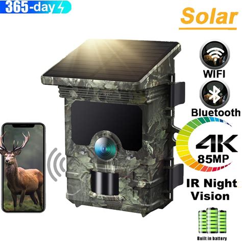 4K Solar Battery Power Trail Camera 85MP Wildlife Trap Trail Cam Night Vision