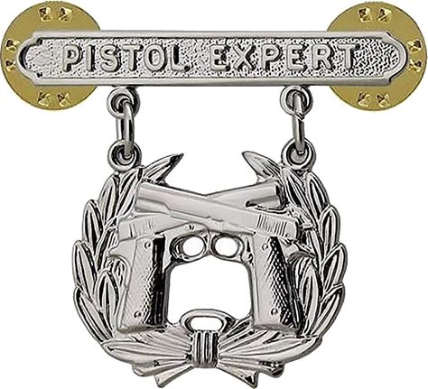 US ARMY Marine Corps PISTOL QUALIFICATION EXPERT Shooting Badge Pin SILVER